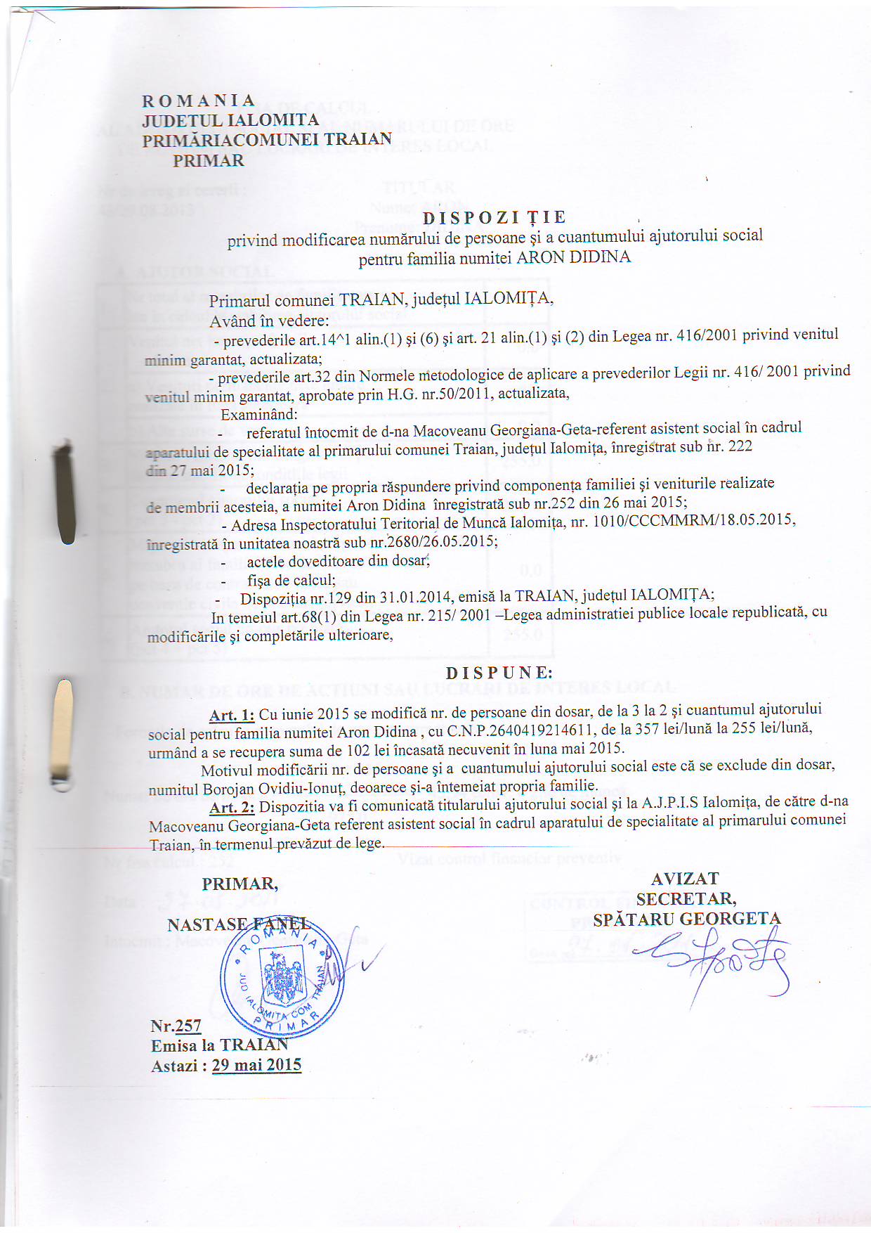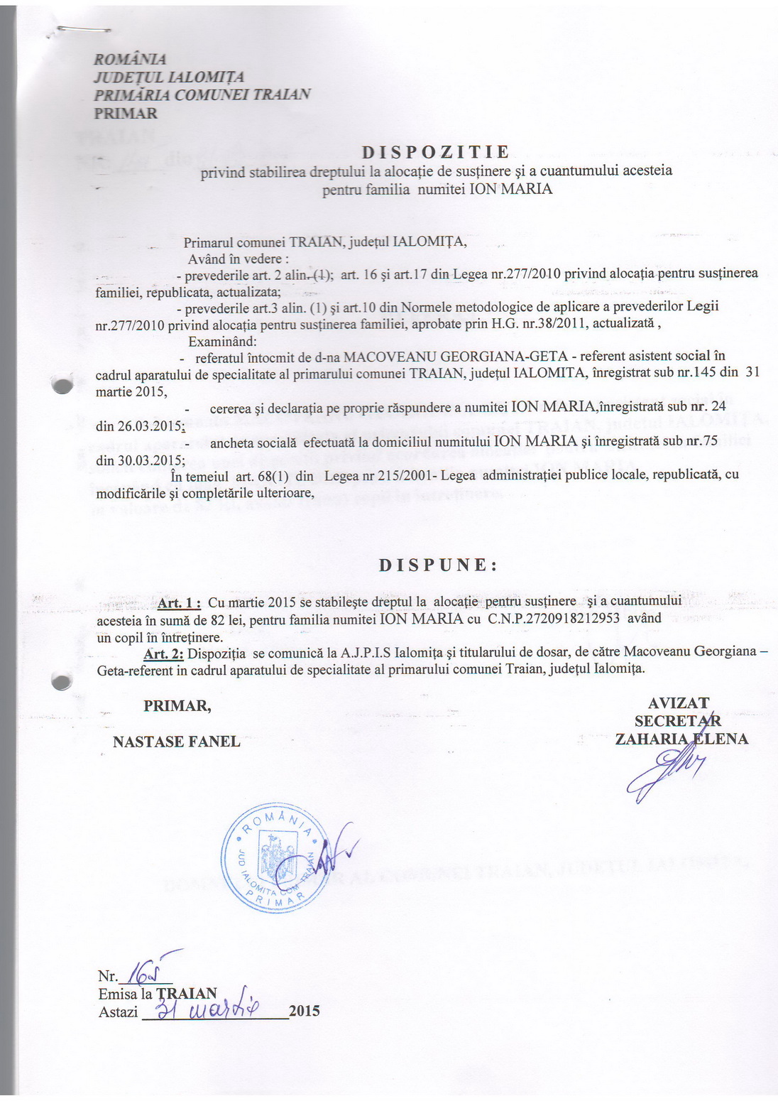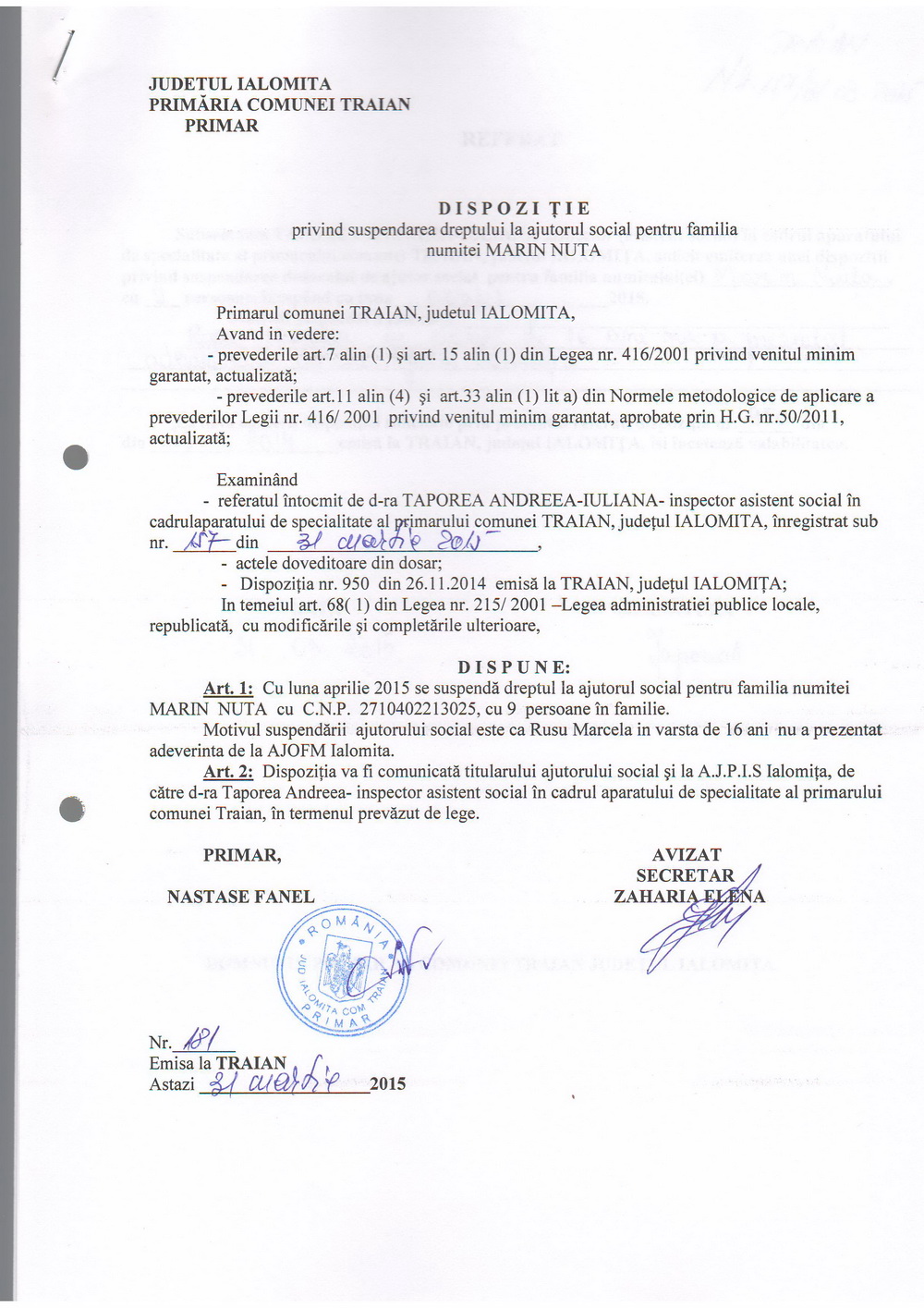 - 11.05.2022 - Raportul Primarului privind starea economica si sociala a com. Traian pe anul 2021