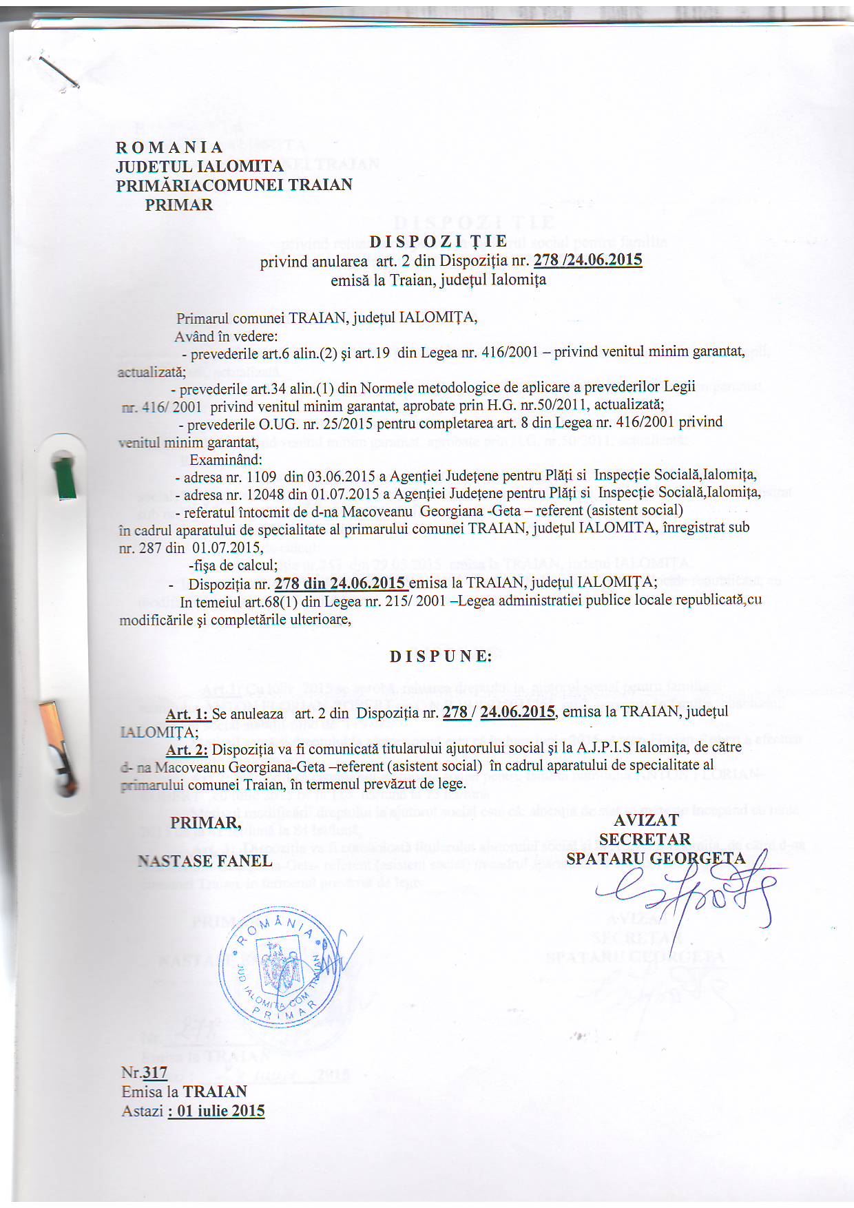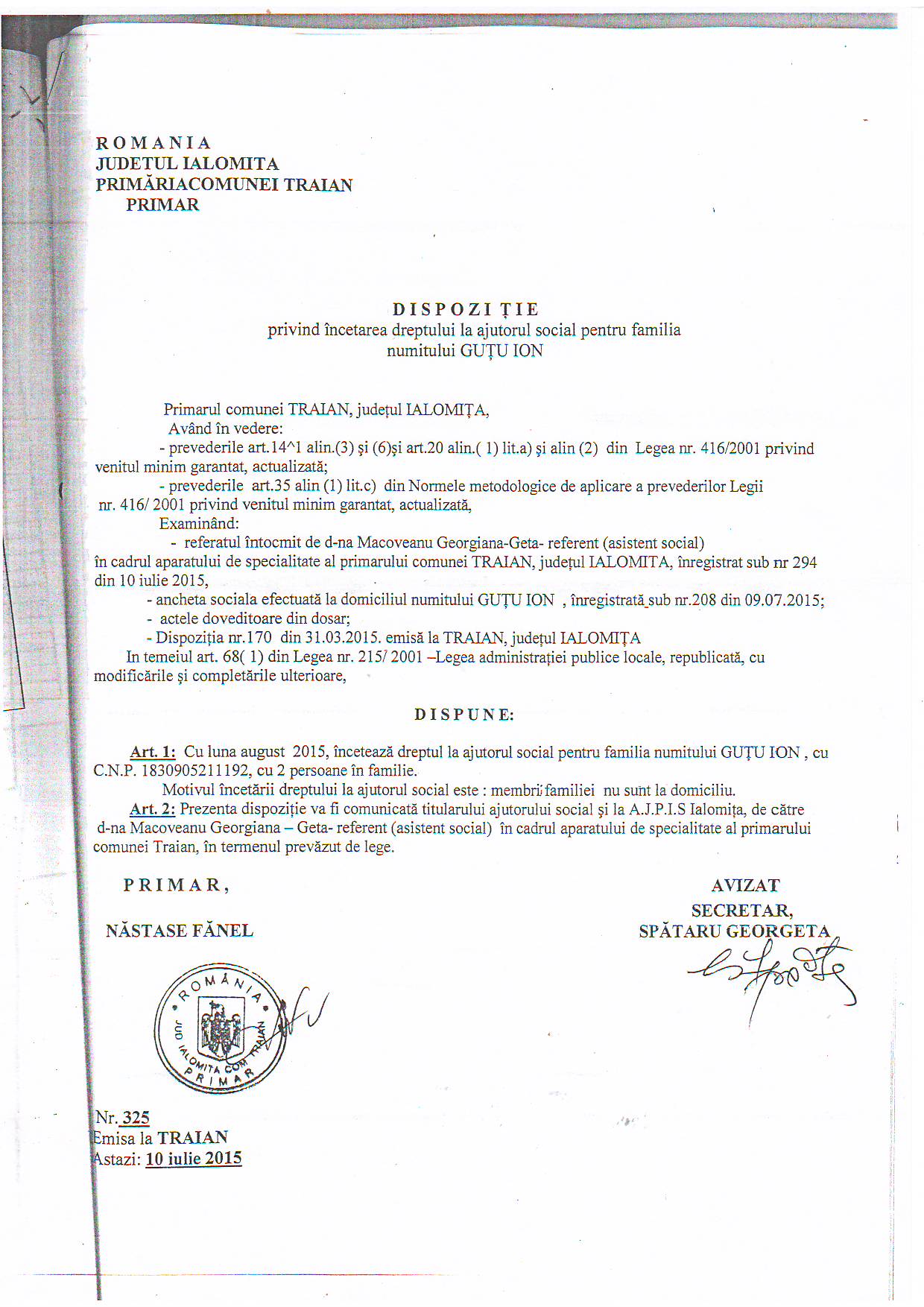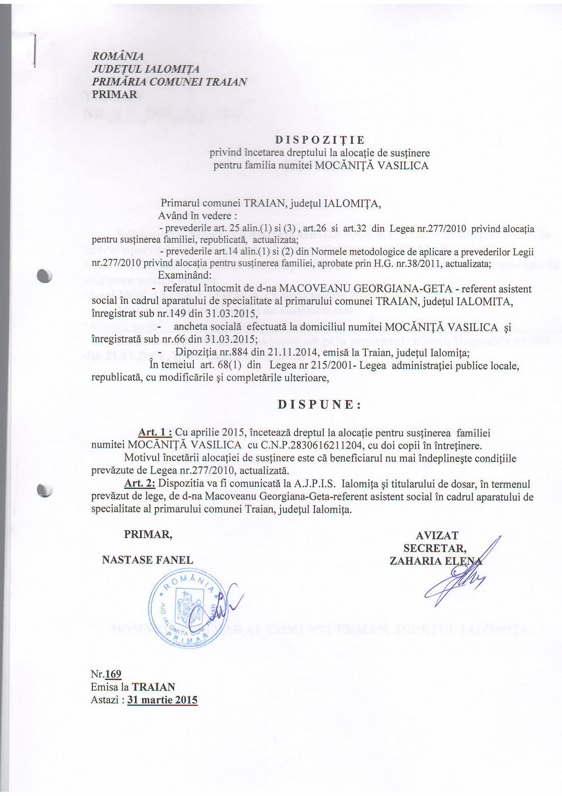 Dispozițiile Primarului