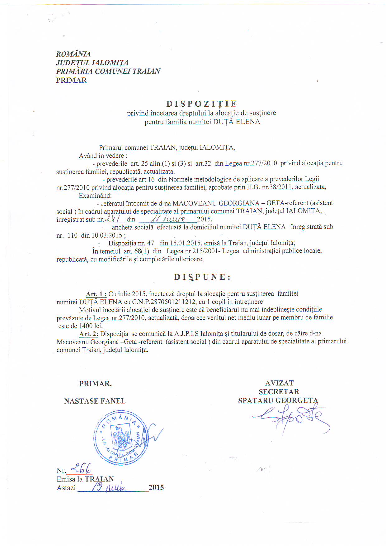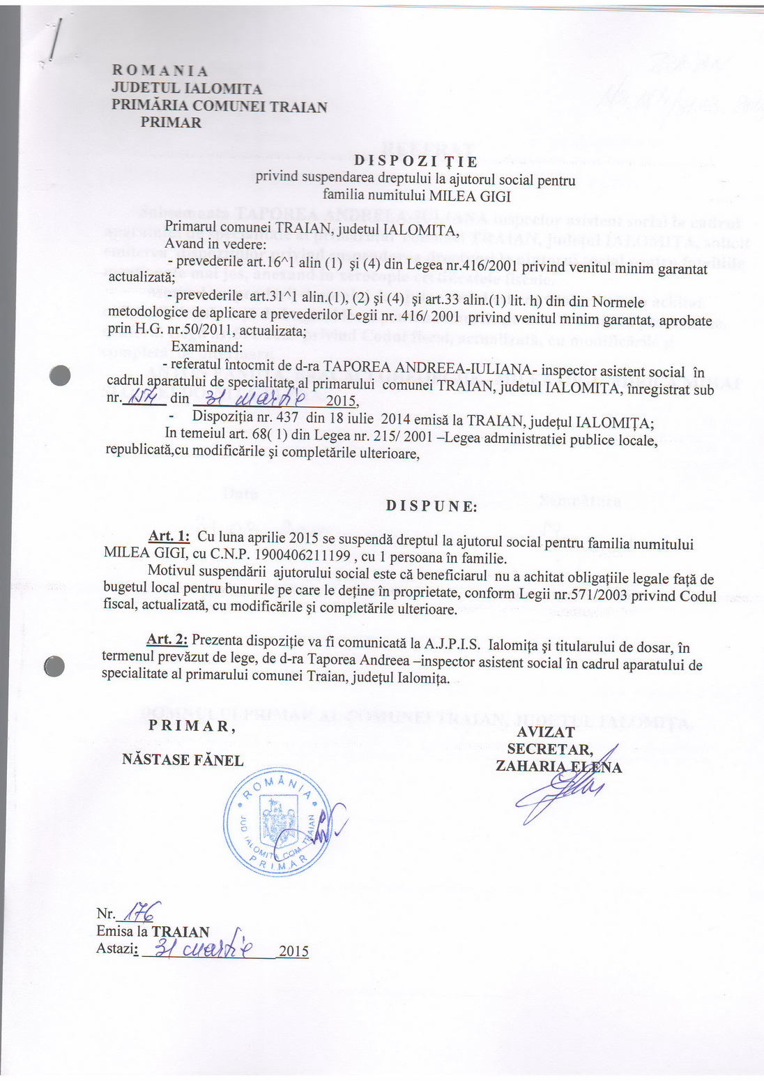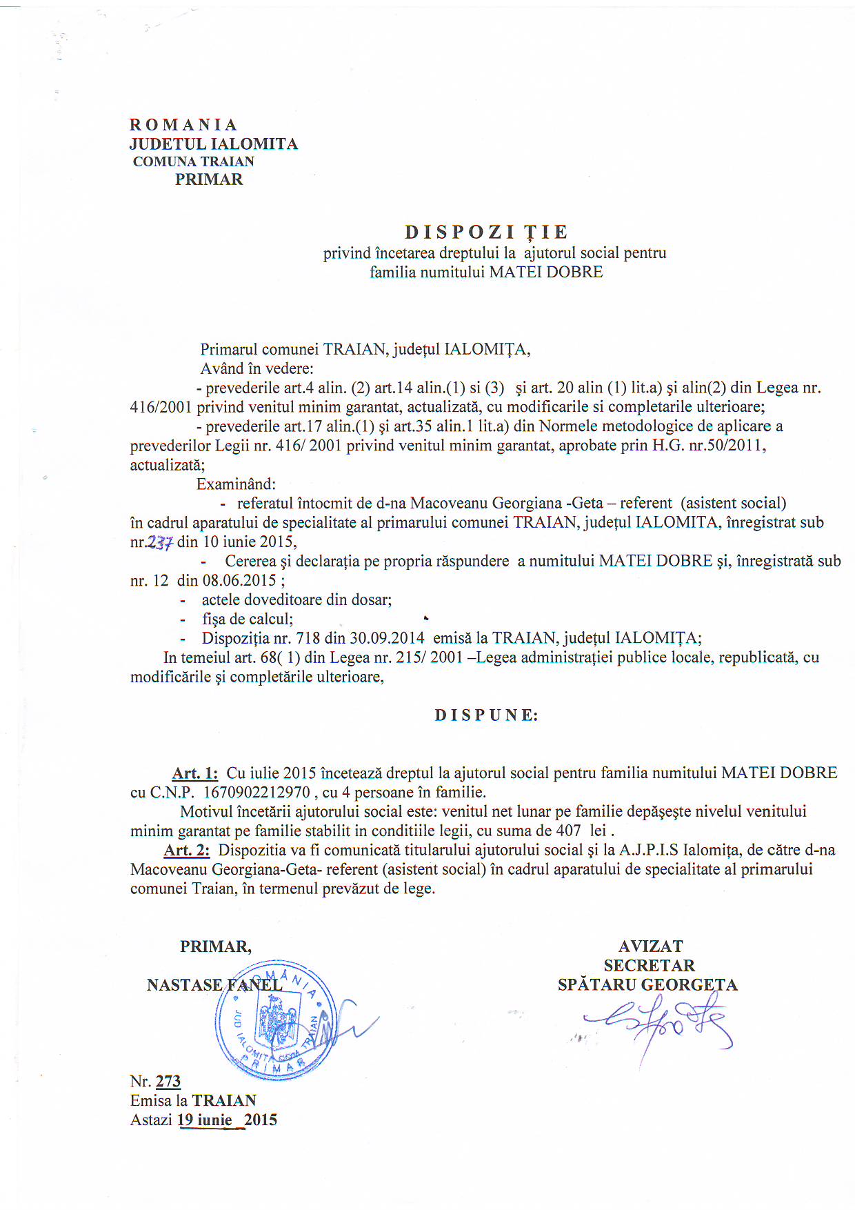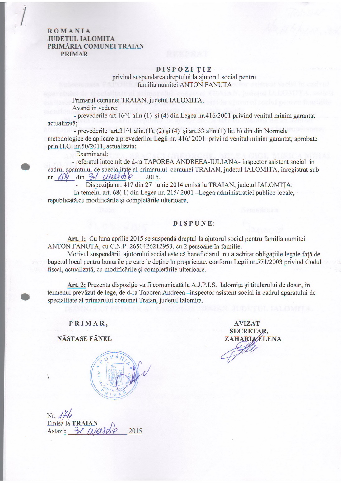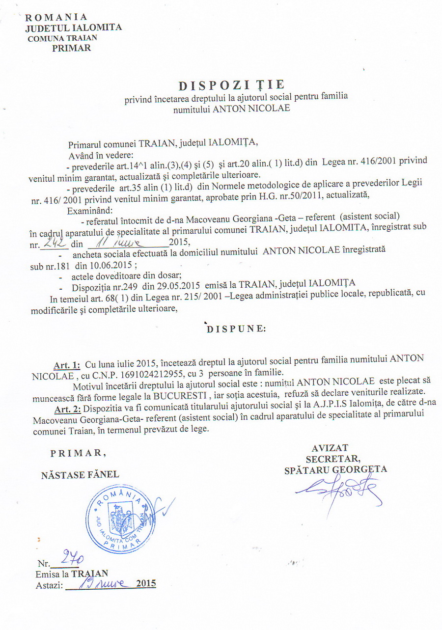 - 03.05.2023 - Raportul Primarului privind starea economica si sociala a com. Traian pe anul 2022