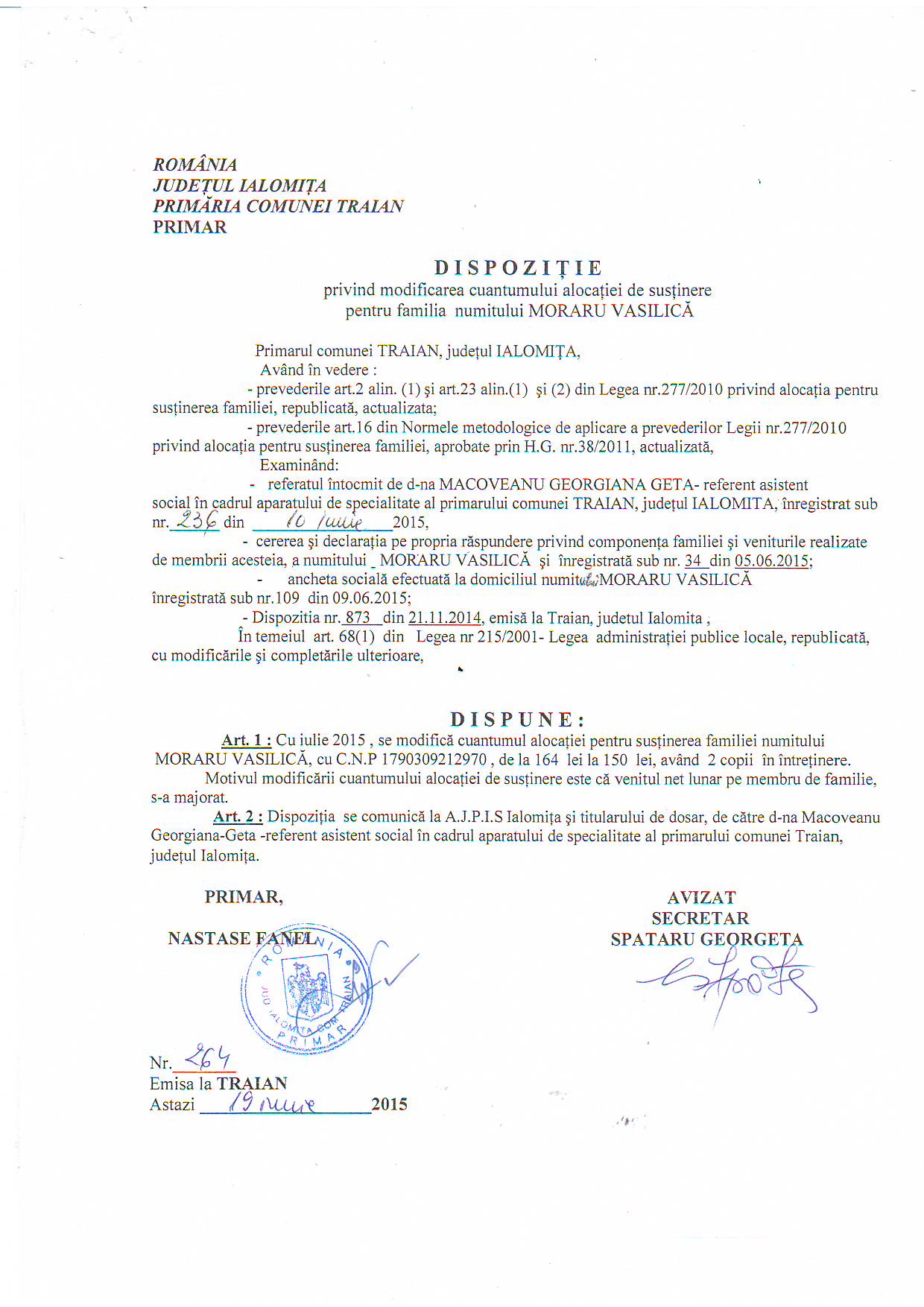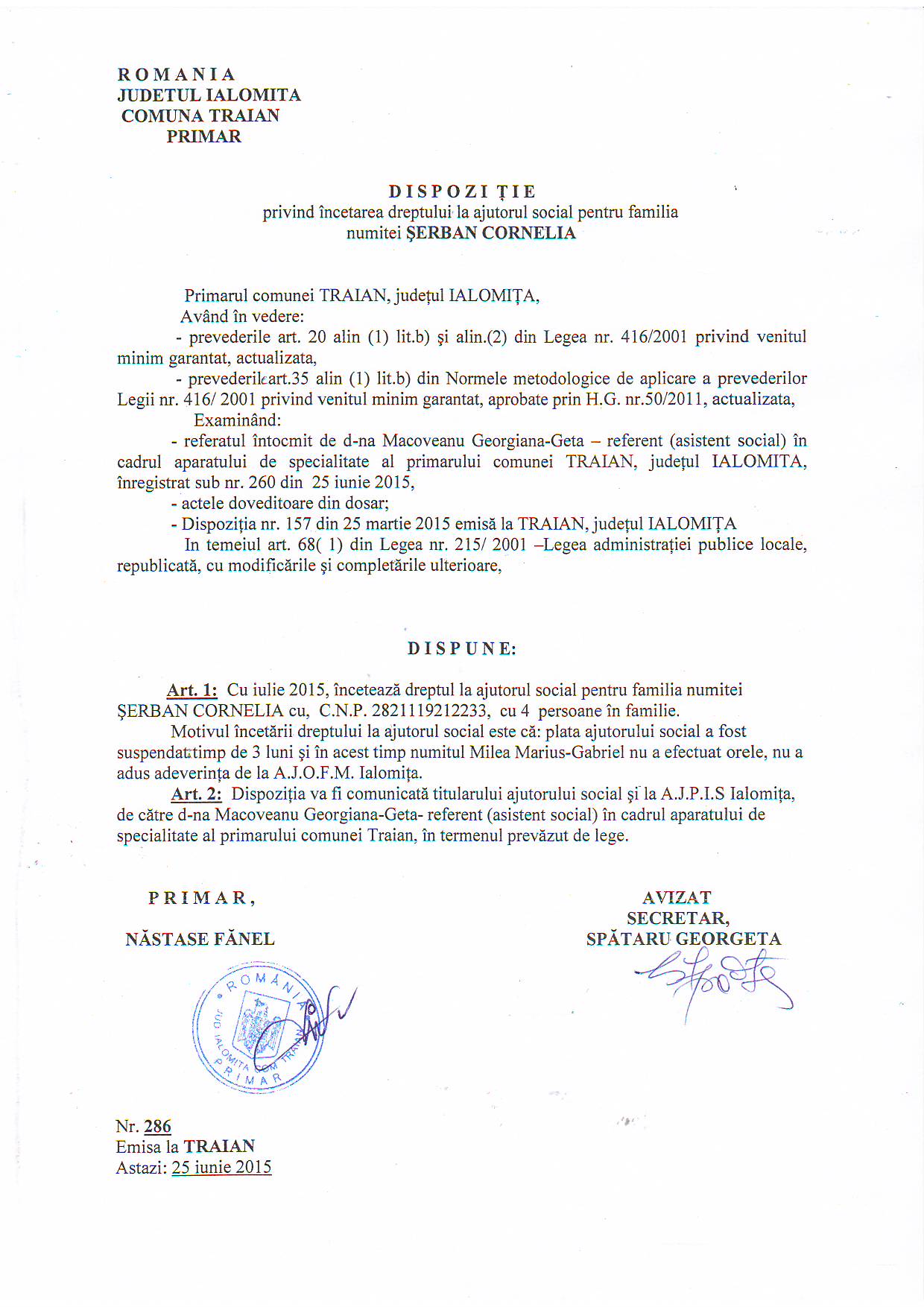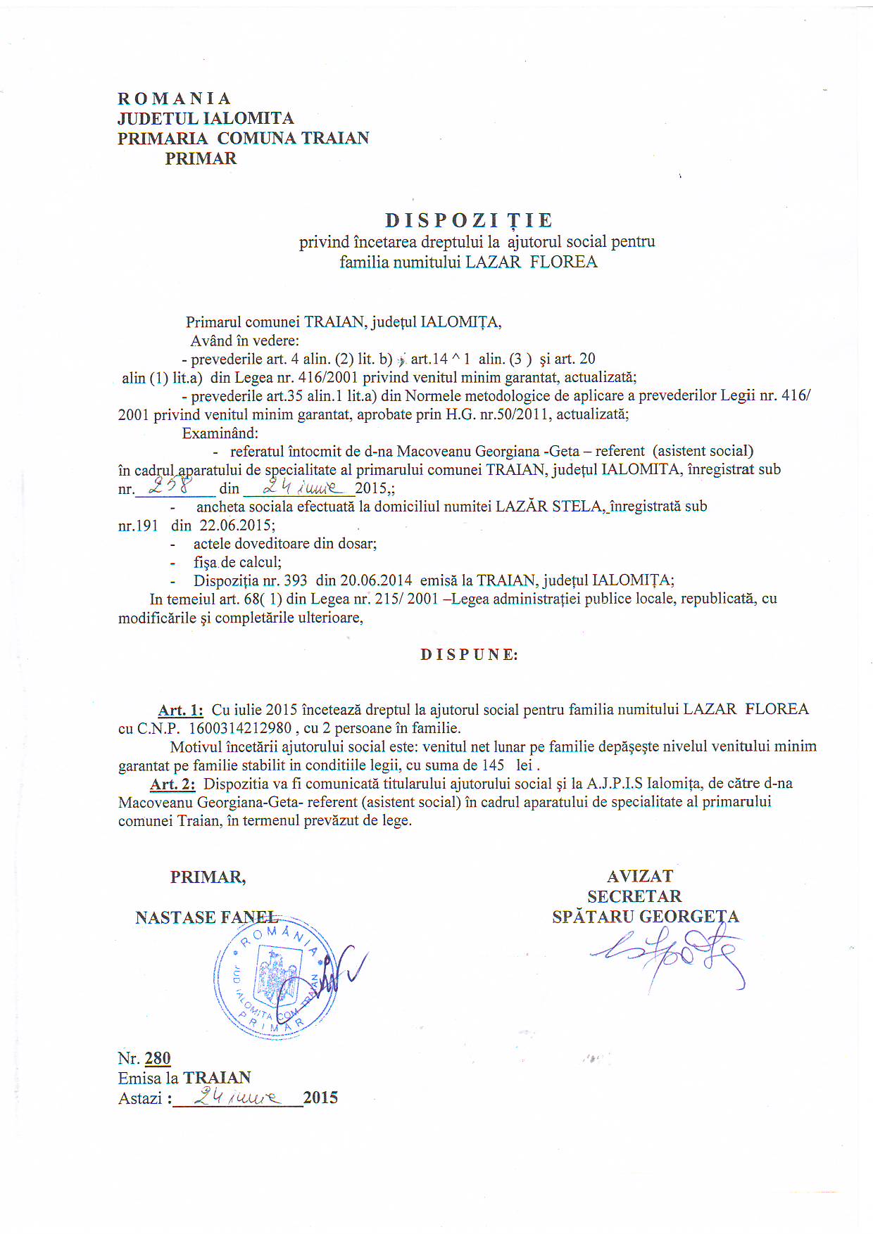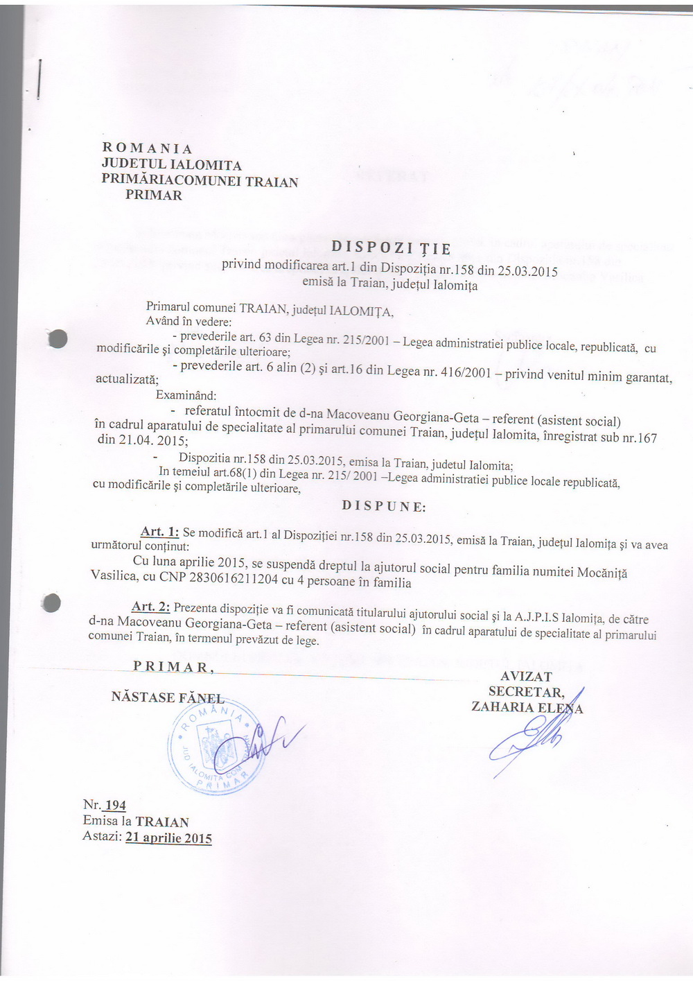 - 03.05.2023 - Raportul Primarului privind starea economica si sociala a com. Traian pe anul 2022