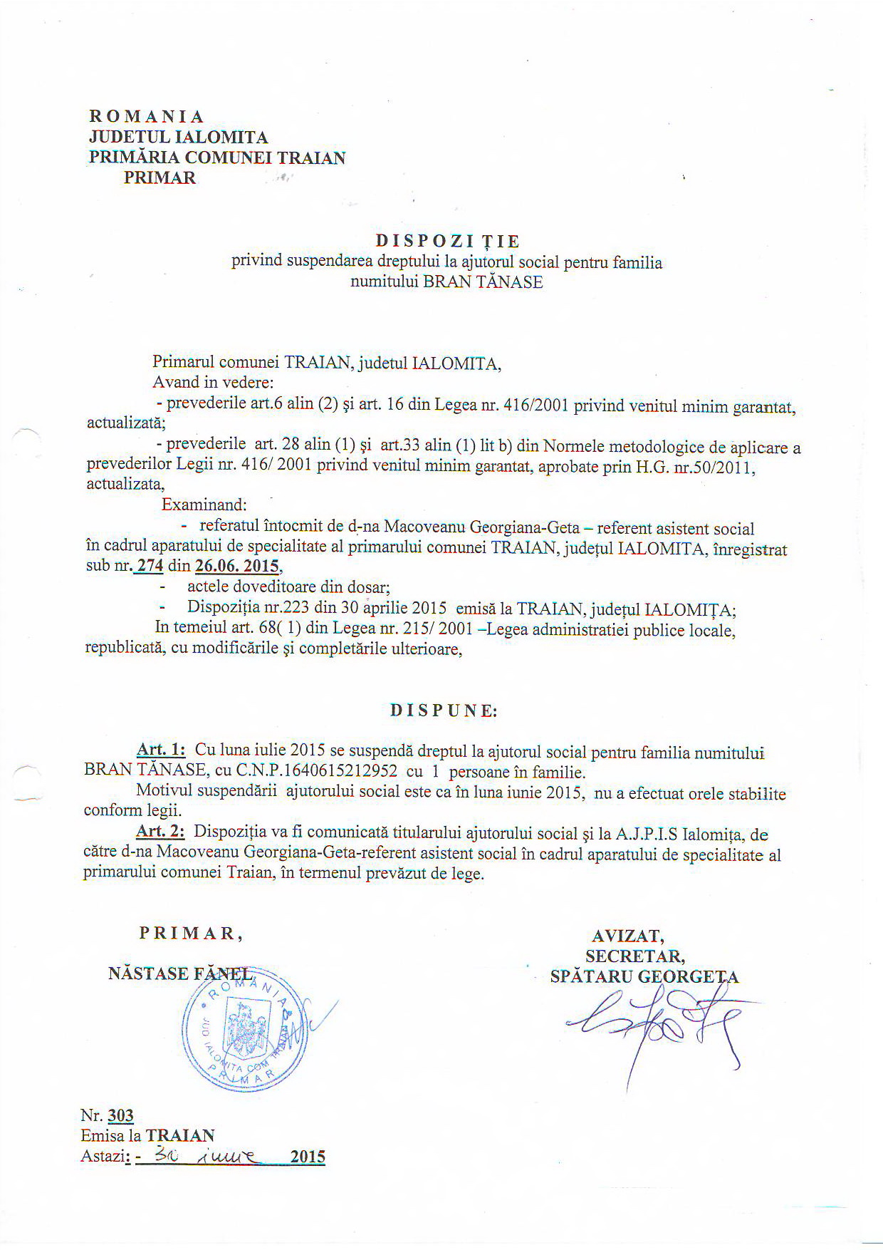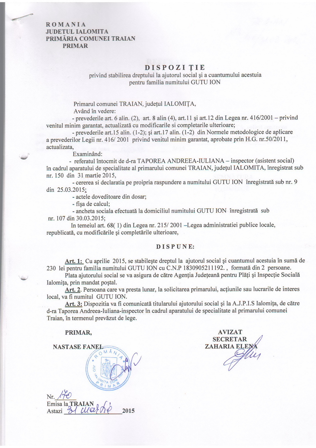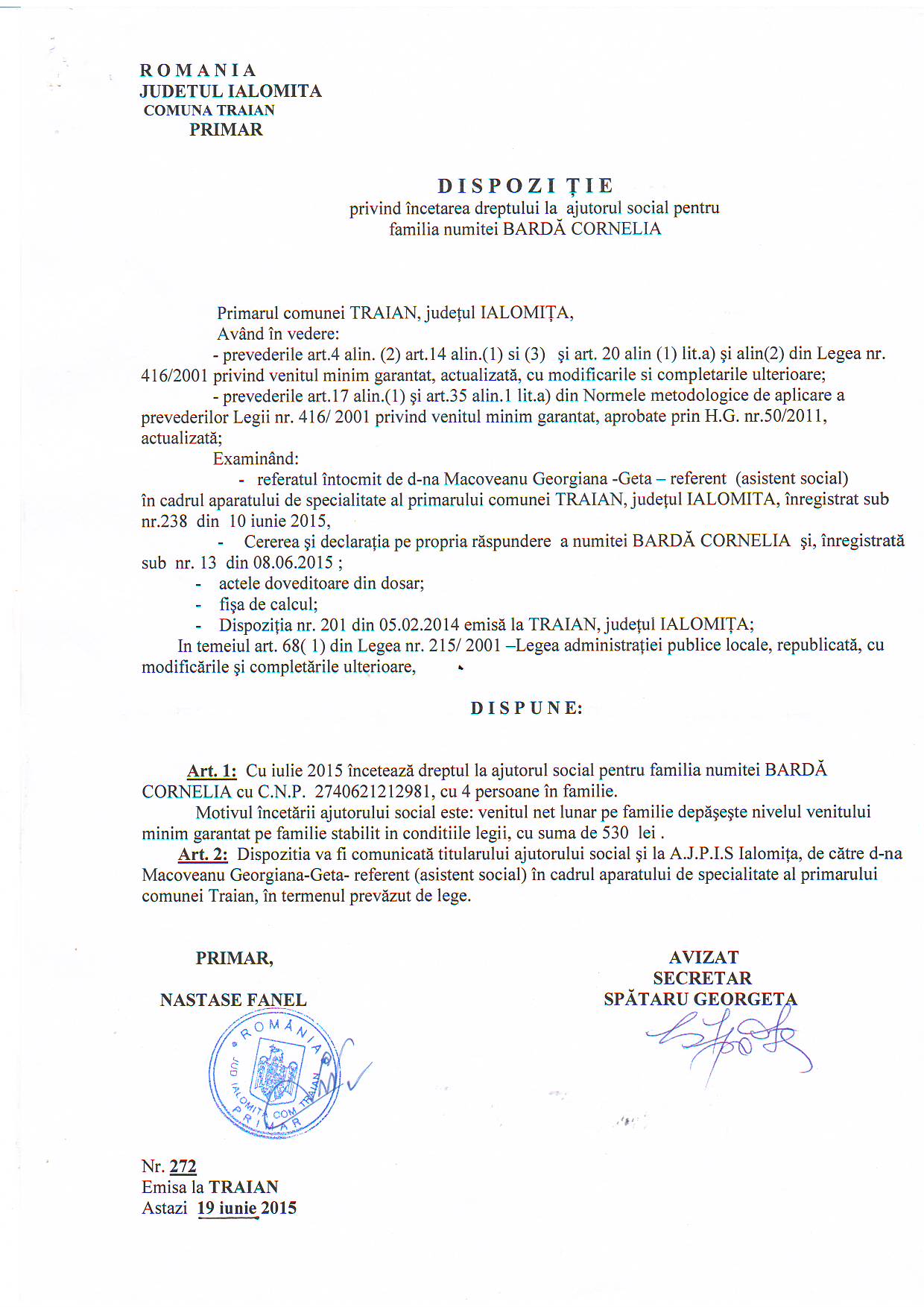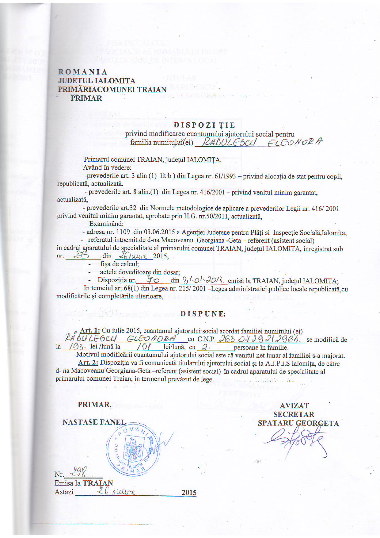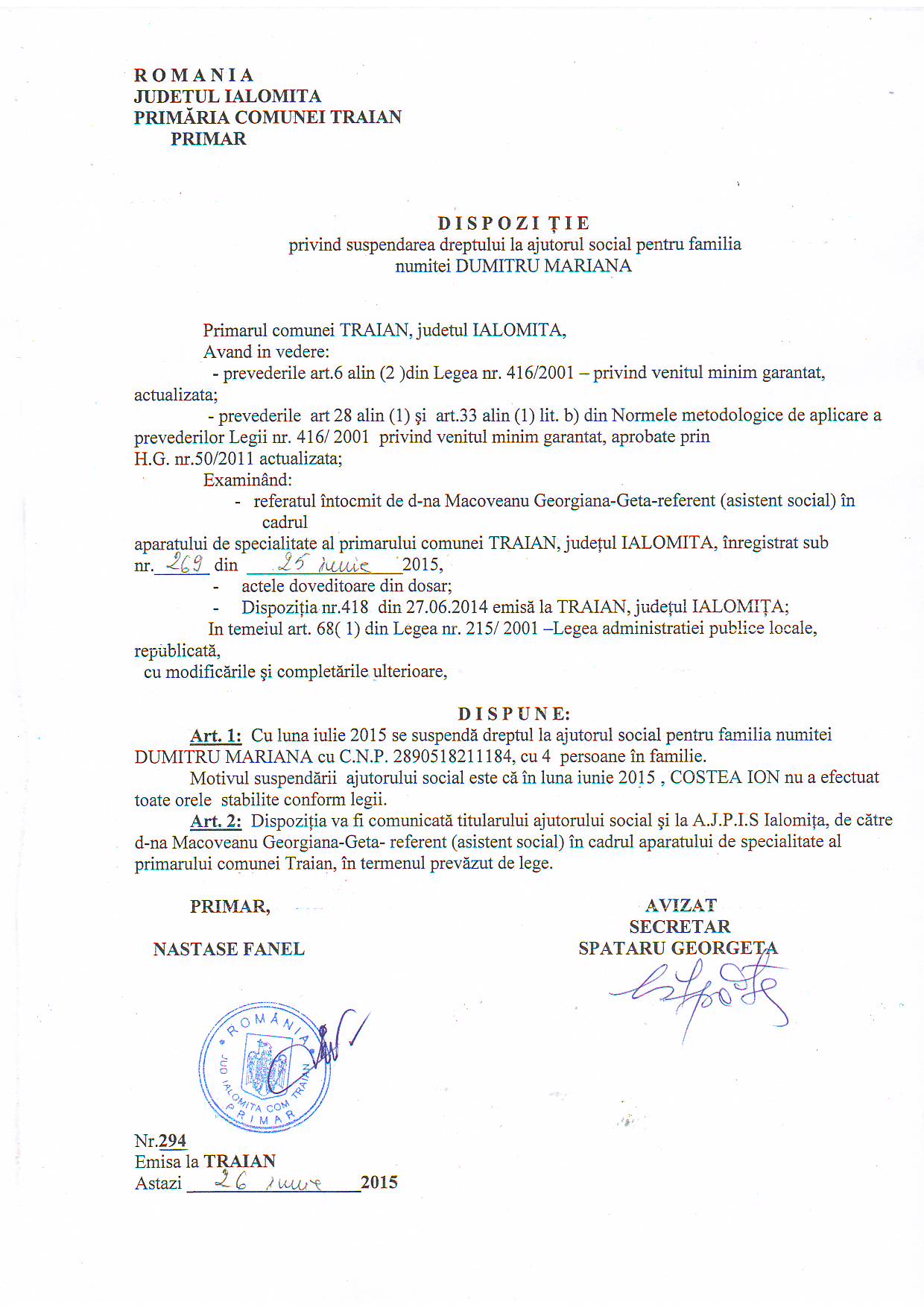 - 03.05.2023 - Raportul Primarului privind starea economica si sociala a com. Traian pe anul 2022