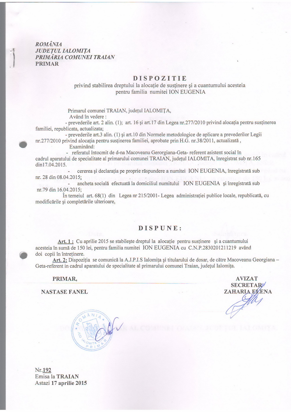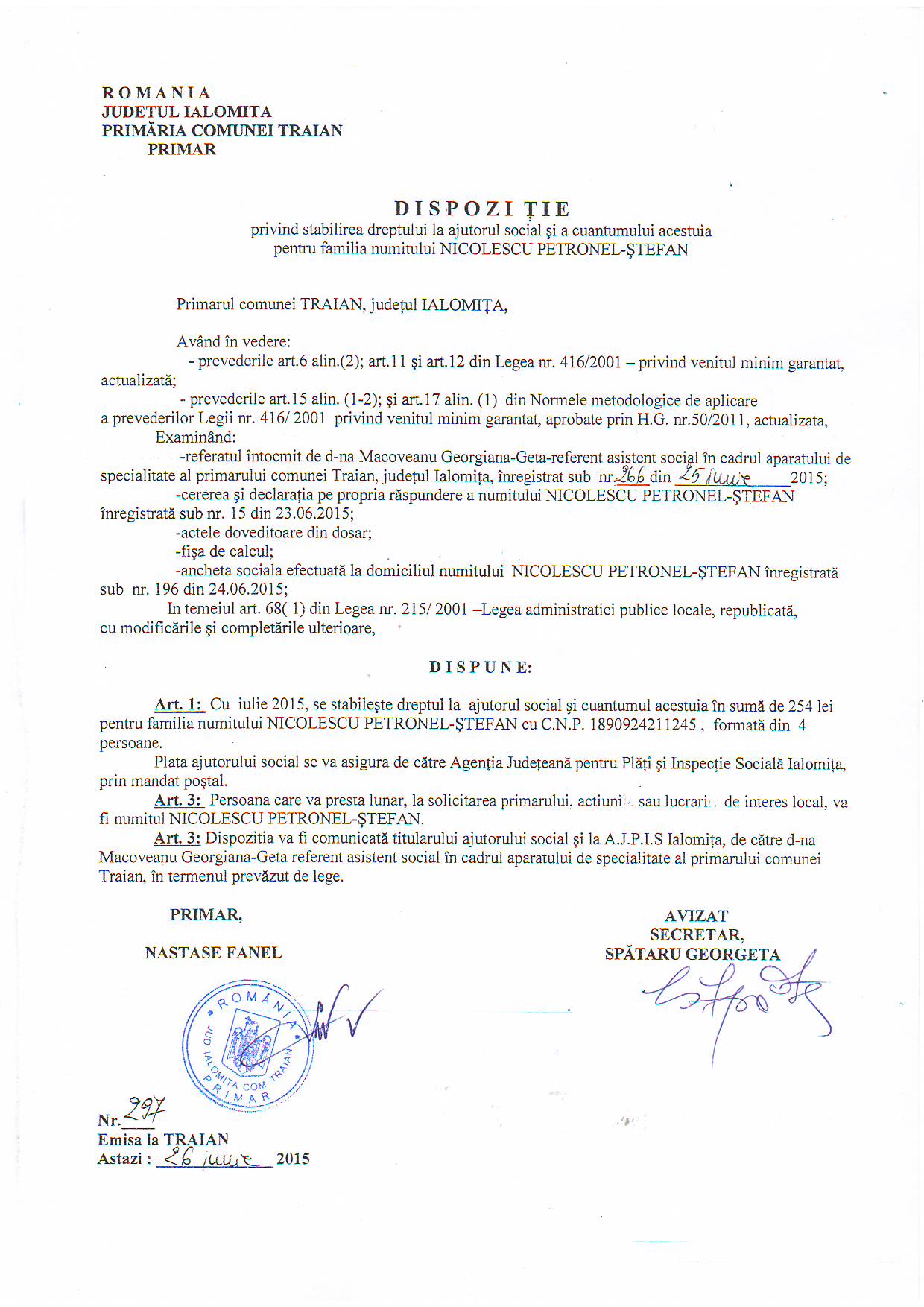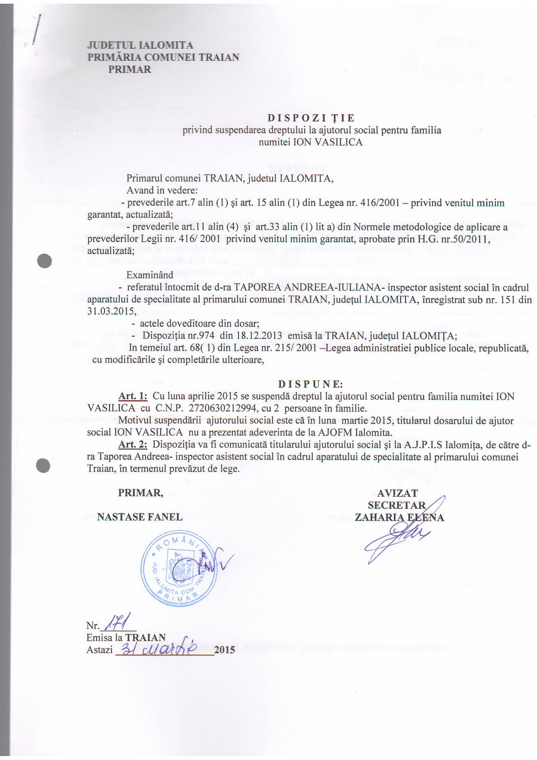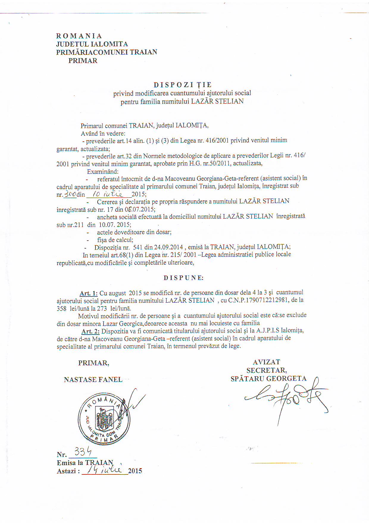 - 03.05.2023 - Raportul Primarului privind starea economica si sociala a com. Traian pe anul 2022
