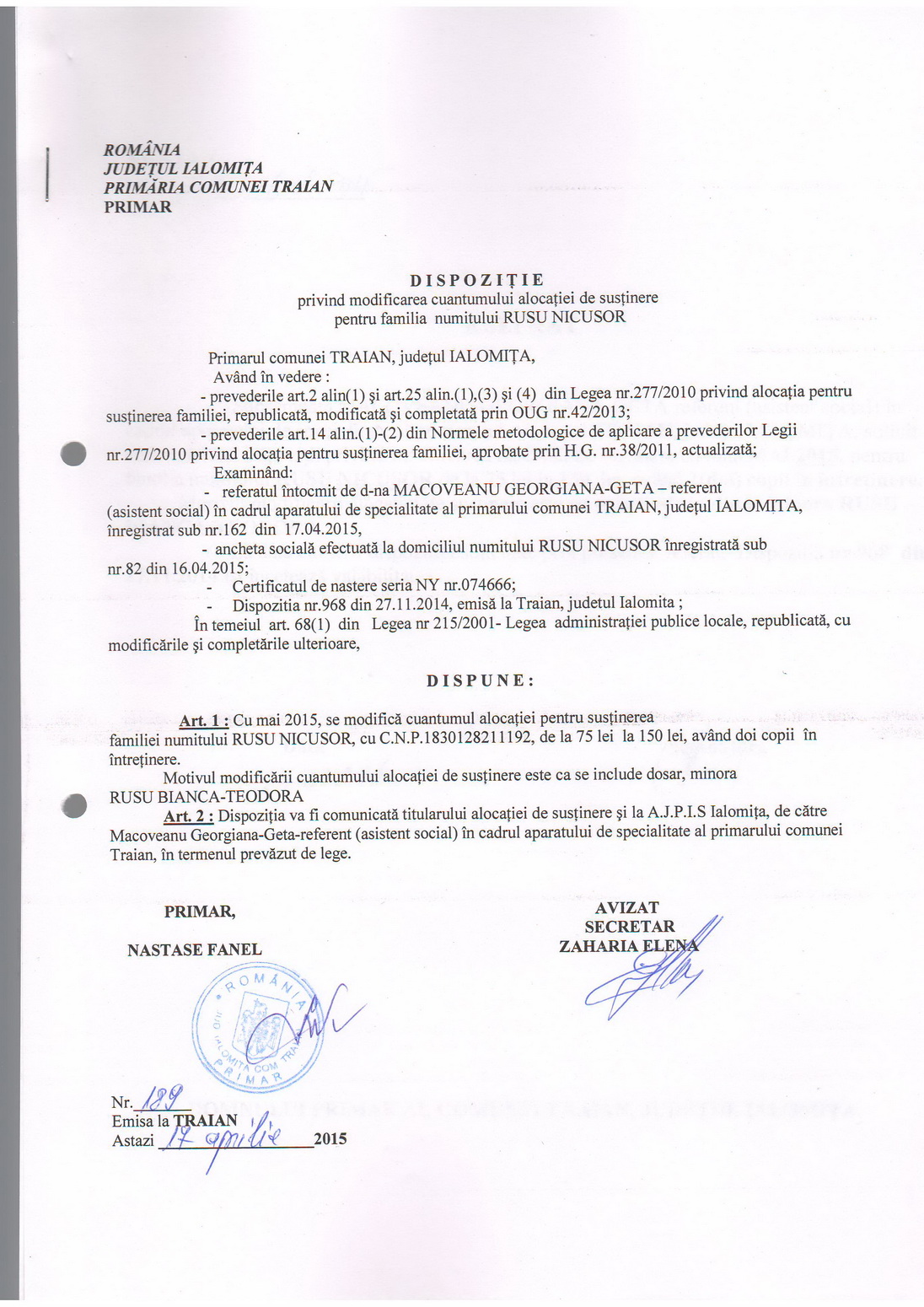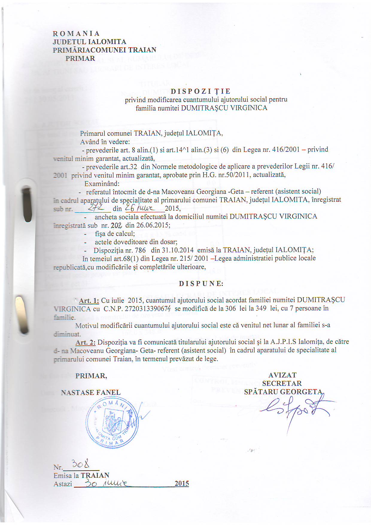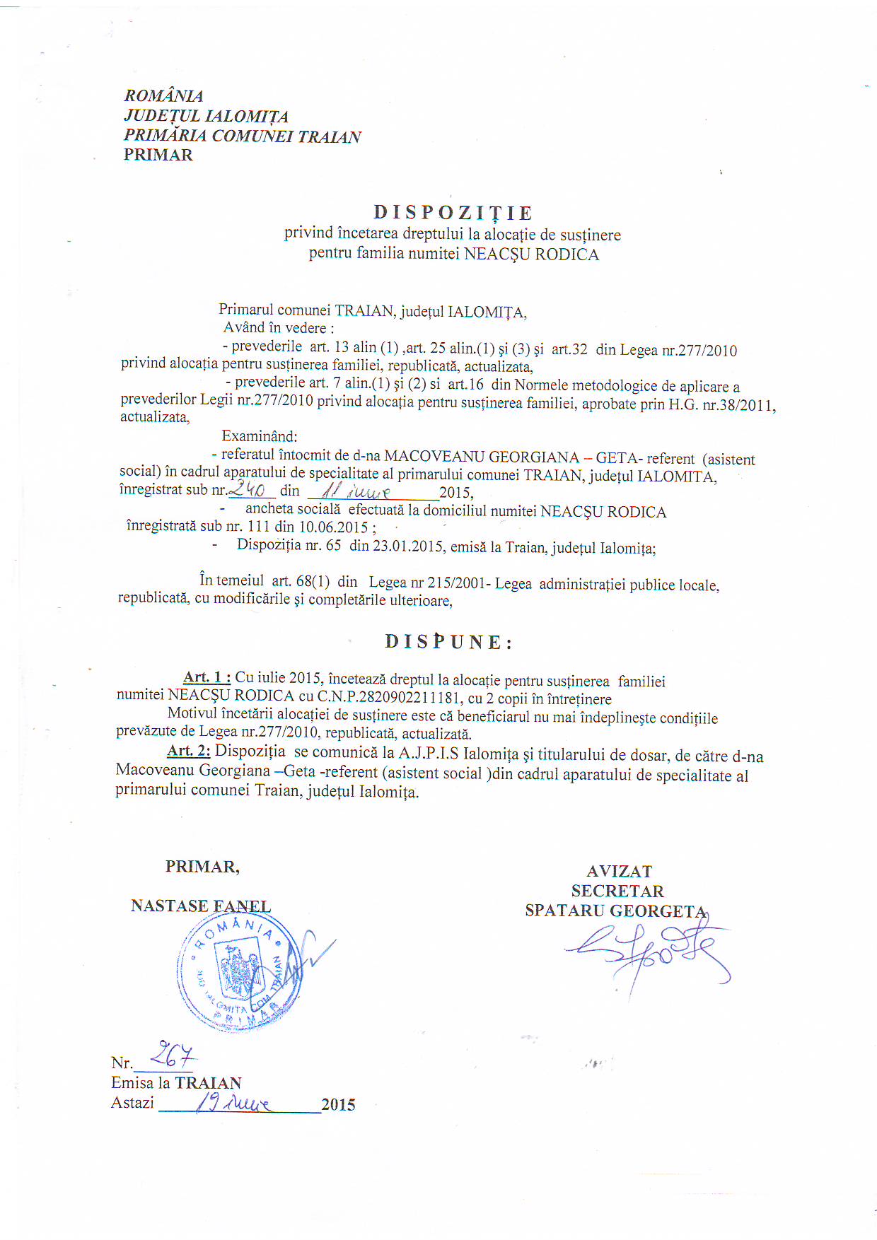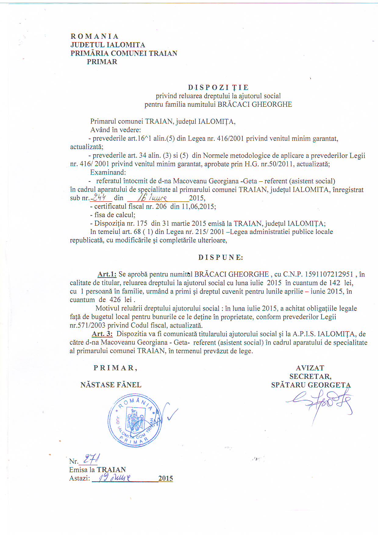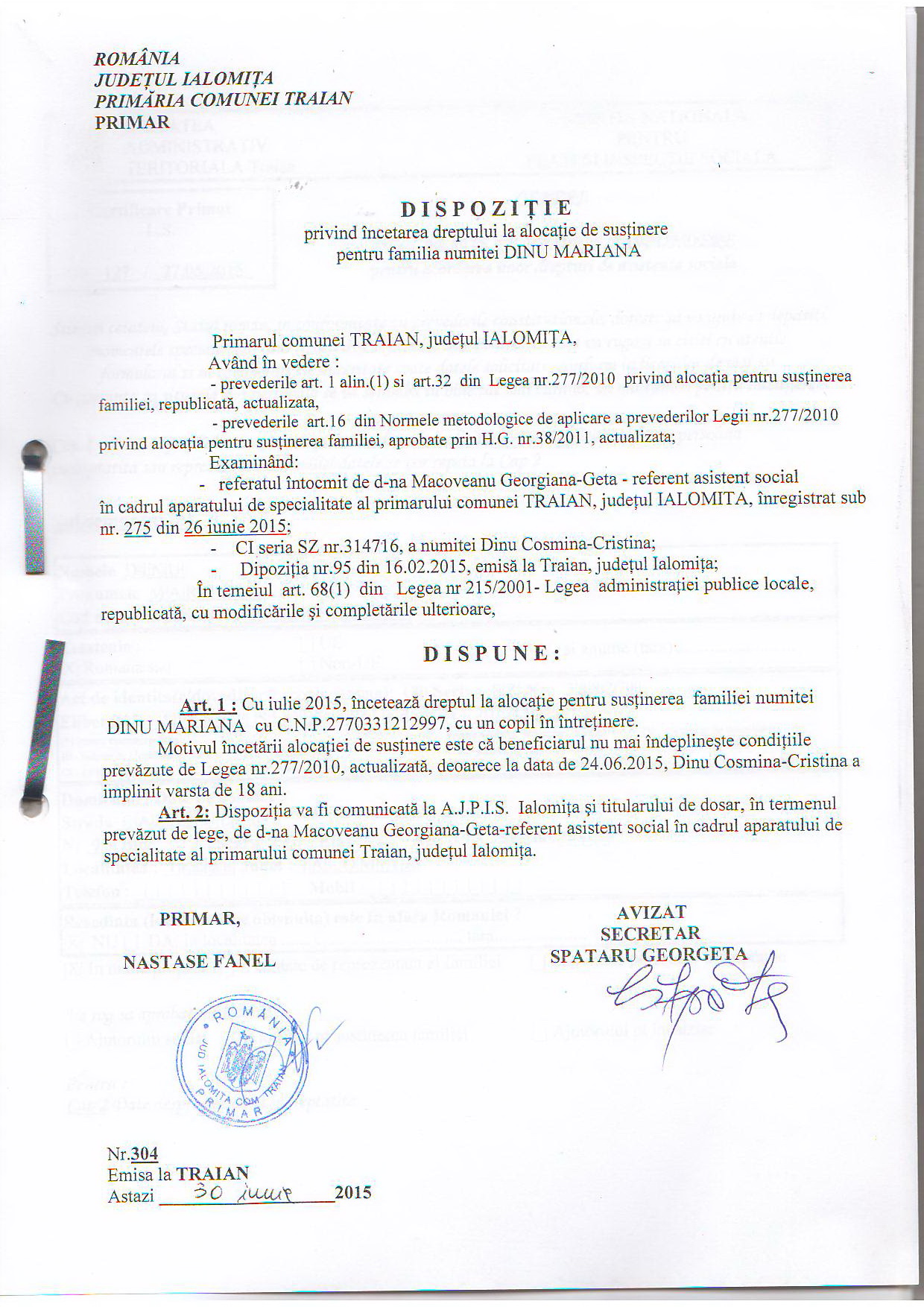 - 03.05.2023 - Raportul Primarului privind starea economica si sociala a com. Traian pe anul 2022