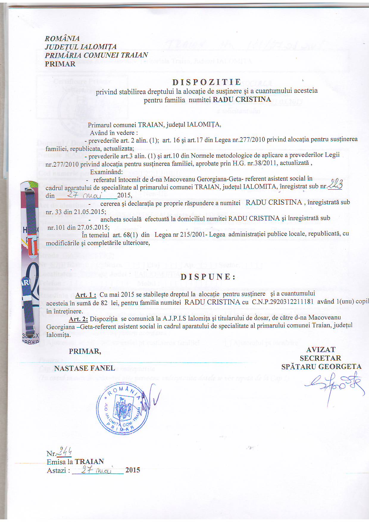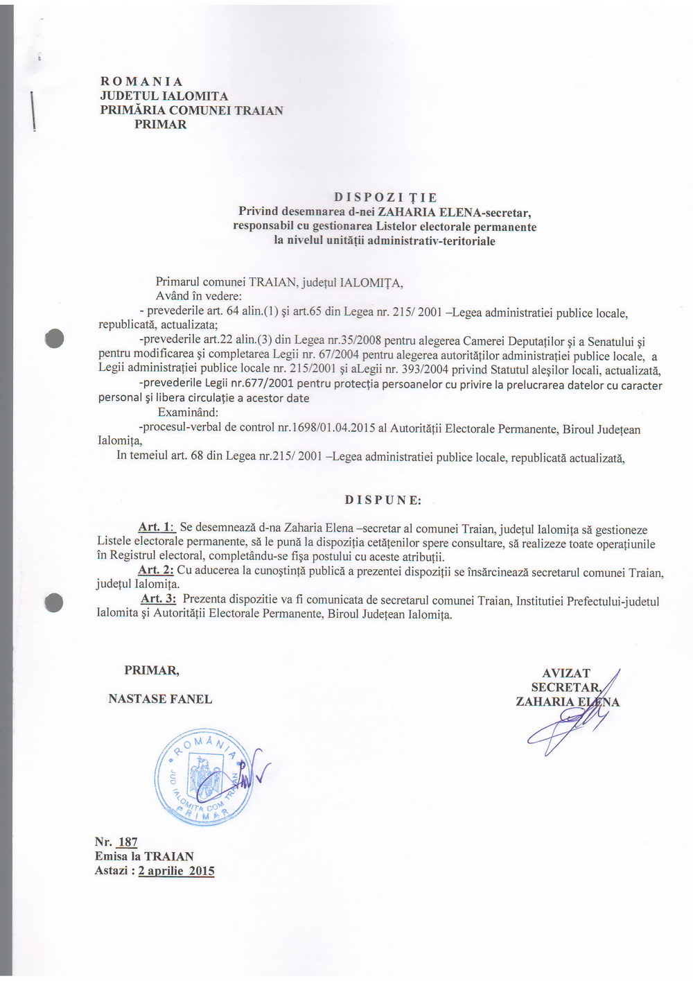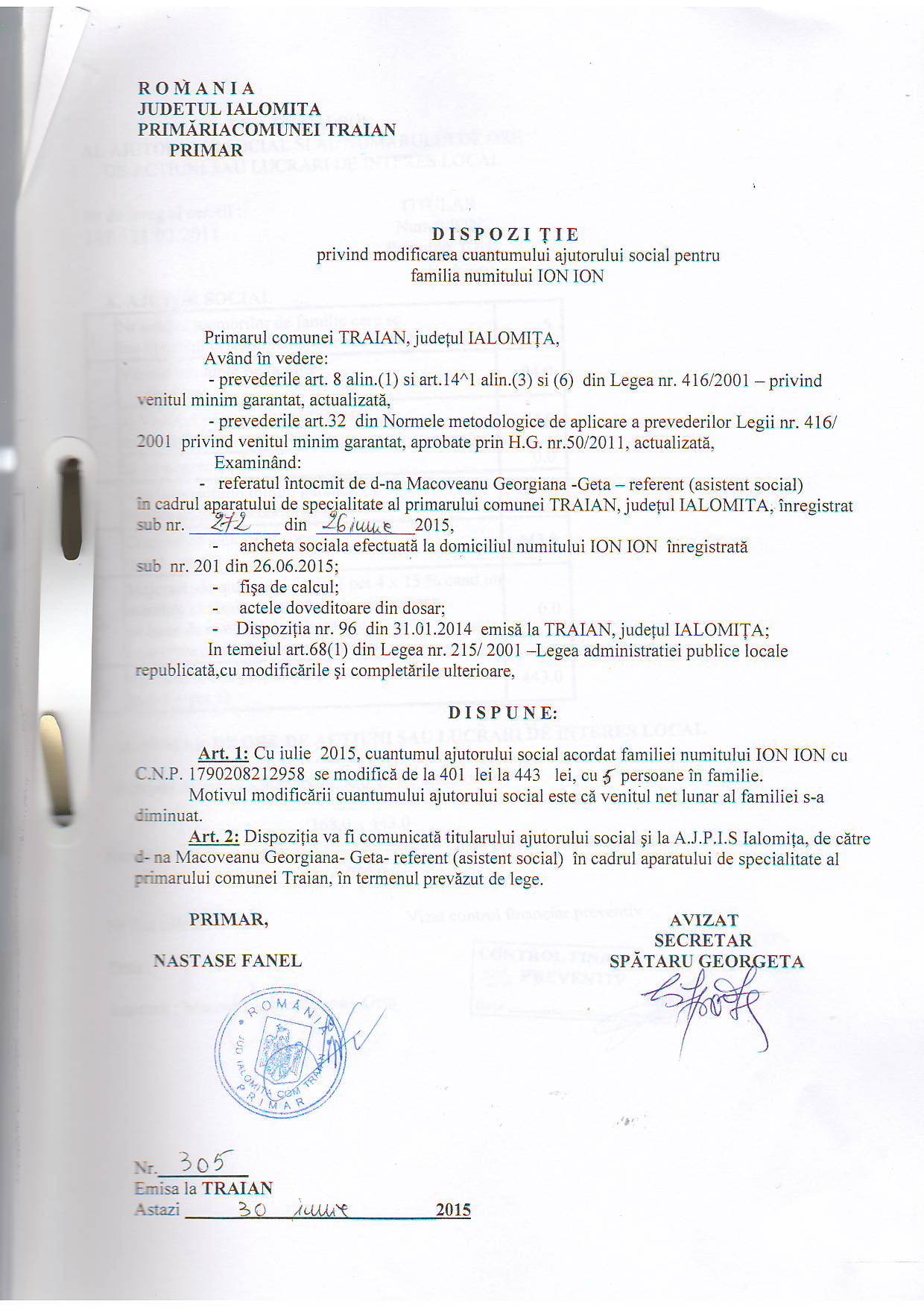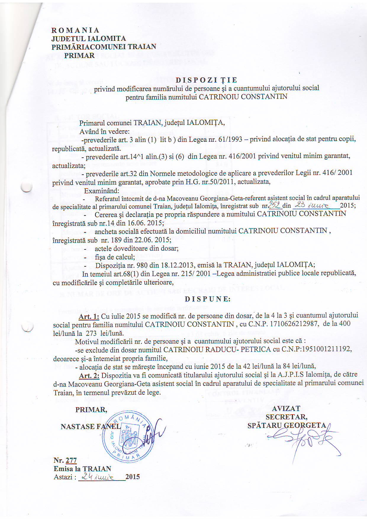 - 03.05.2023 - Raportul Primarului privind starea economica si sociala a com. Traian pe anul 2022